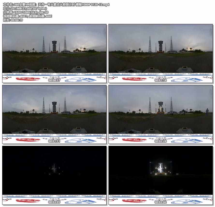 360全景VR视频:天舟一号火箭点火前倒计时 模糊1080P 0120-12