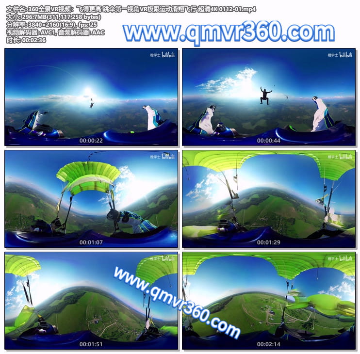 360全景VR视频:飞得更高 跳伞第一视角VR极限运动滑翔飞行 超清4K 0112-01