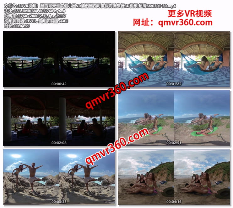 3DVR视频:墨西哥天堂度假小屋VR情侣墨西哥度假海滩旅行3D视频 超清6K 0301-30