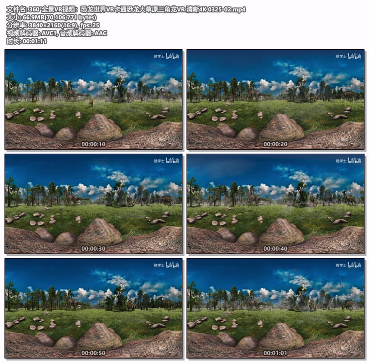 360°全景VR视频:恐龙世界VR卡通恐龙大草原三角龙VR 清晰4K 0325-02