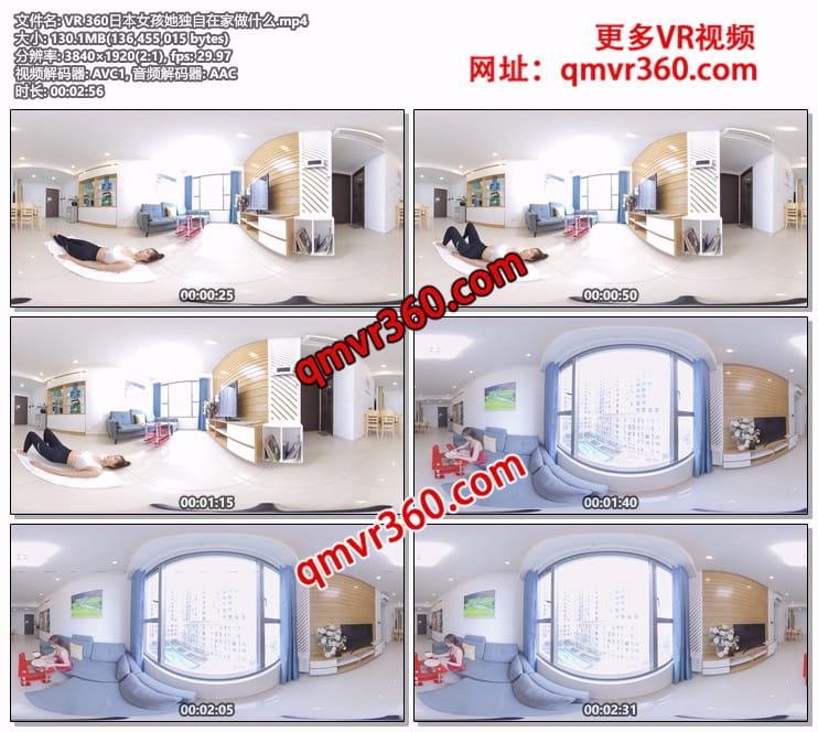 360°全景VR视频:日本女孩她独自在家做什么VR日本美女健身运动瑜伽体操 0415-09