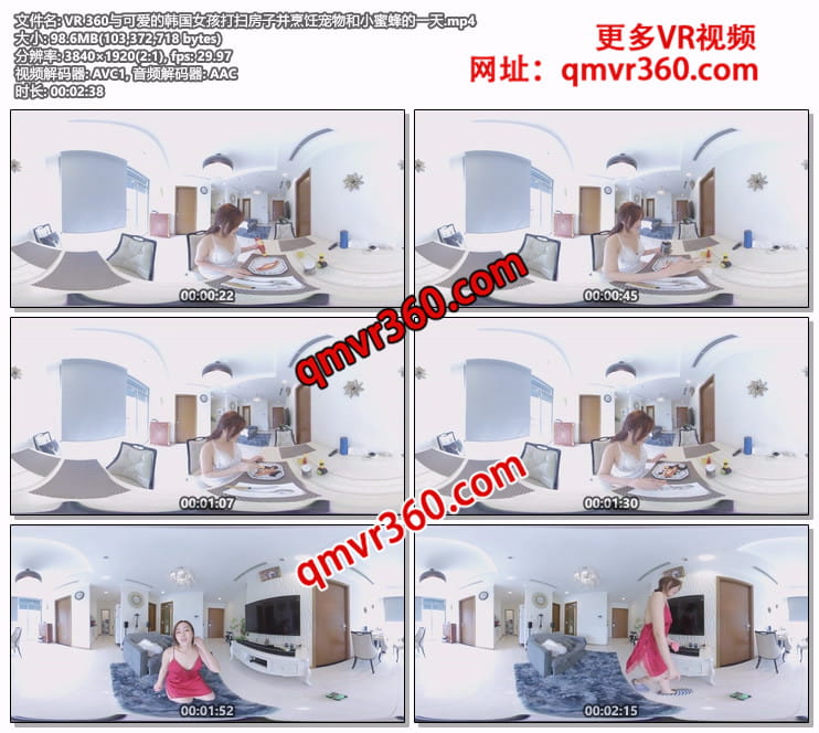 360°全景VR视频:与可爱的韩国女孩打扫房子并烹饪宠物和小蜜蜂的一天 0417-10