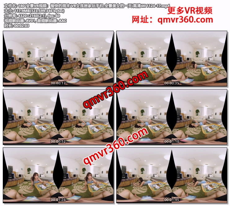 180°全景VR视频:愉快的周末 VR女孩居家玩手机 全景美女的一天 高清4K 1124-17