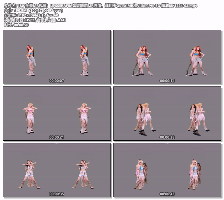 180°全景MR视频:LE SSERAFIM智能舞蹈MR通道,适用于Quest MR和Vision Pro 3D 超清8K 1224-02