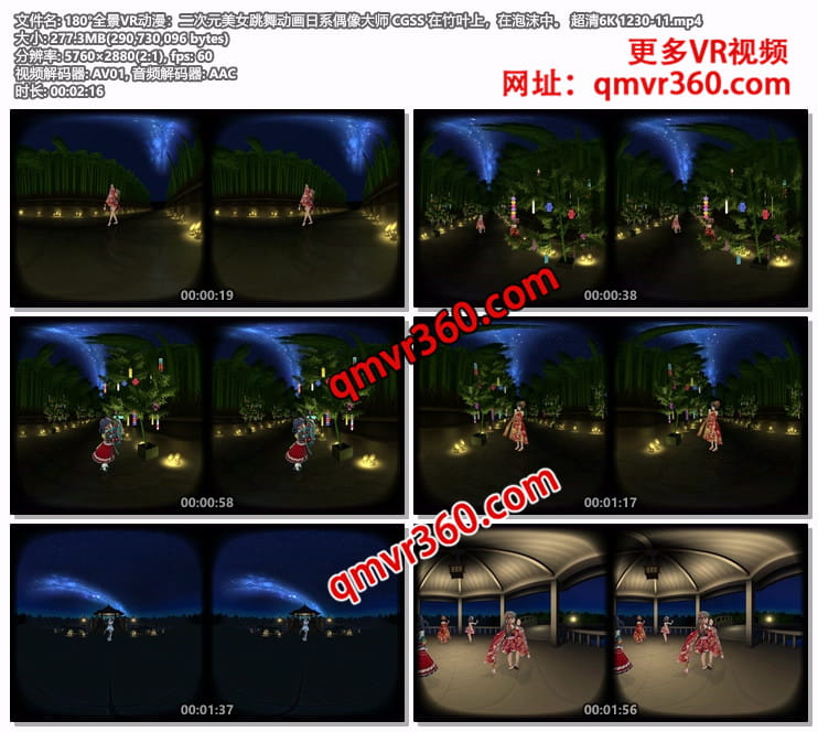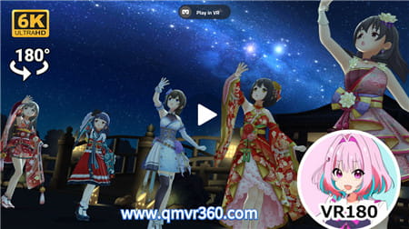 180°全景VR动漫:二次元美女跳舞动画日系偶像大师 CGSS 在竹叶上,在泡沫中。 超清6K 1230-11