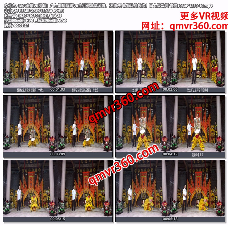 180°全景VR视频:广东舞狮醒狮VR主讲何武棠师傅,怀德.万丰狮队总教练!国家级裁判 普通1080P 1230-10