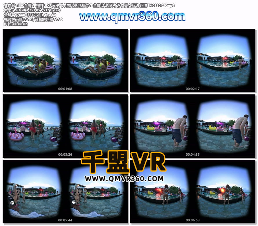 180°全景VR视频:XR沉浸式中国比基尼派对VR全景 泳池派对 泳衣美女互动 超清8K 0120-20