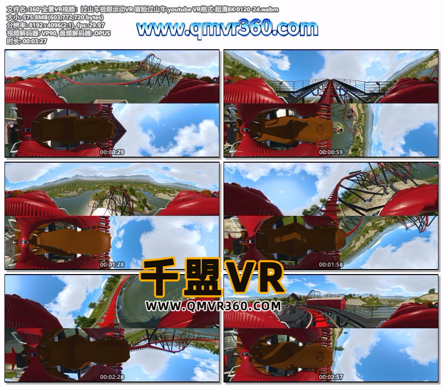 360°全景VR视频:过山车极限运动VR 冒险过山车 youtube VR格式 超清8K 0120-24