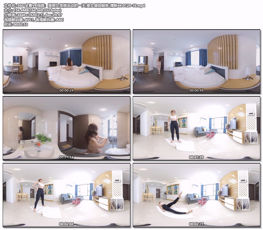 360°全景VR视频:美丽女孩做运动的一天 美女瑜伽锻炼 清晰4K 0120-16