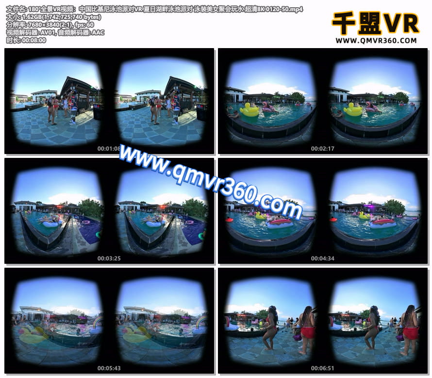 180°全景VR视频:中国比基尼泳池派对VR 夏日湖畔泳池派对 泳装美女聚会玩水 超清8K 0120-50